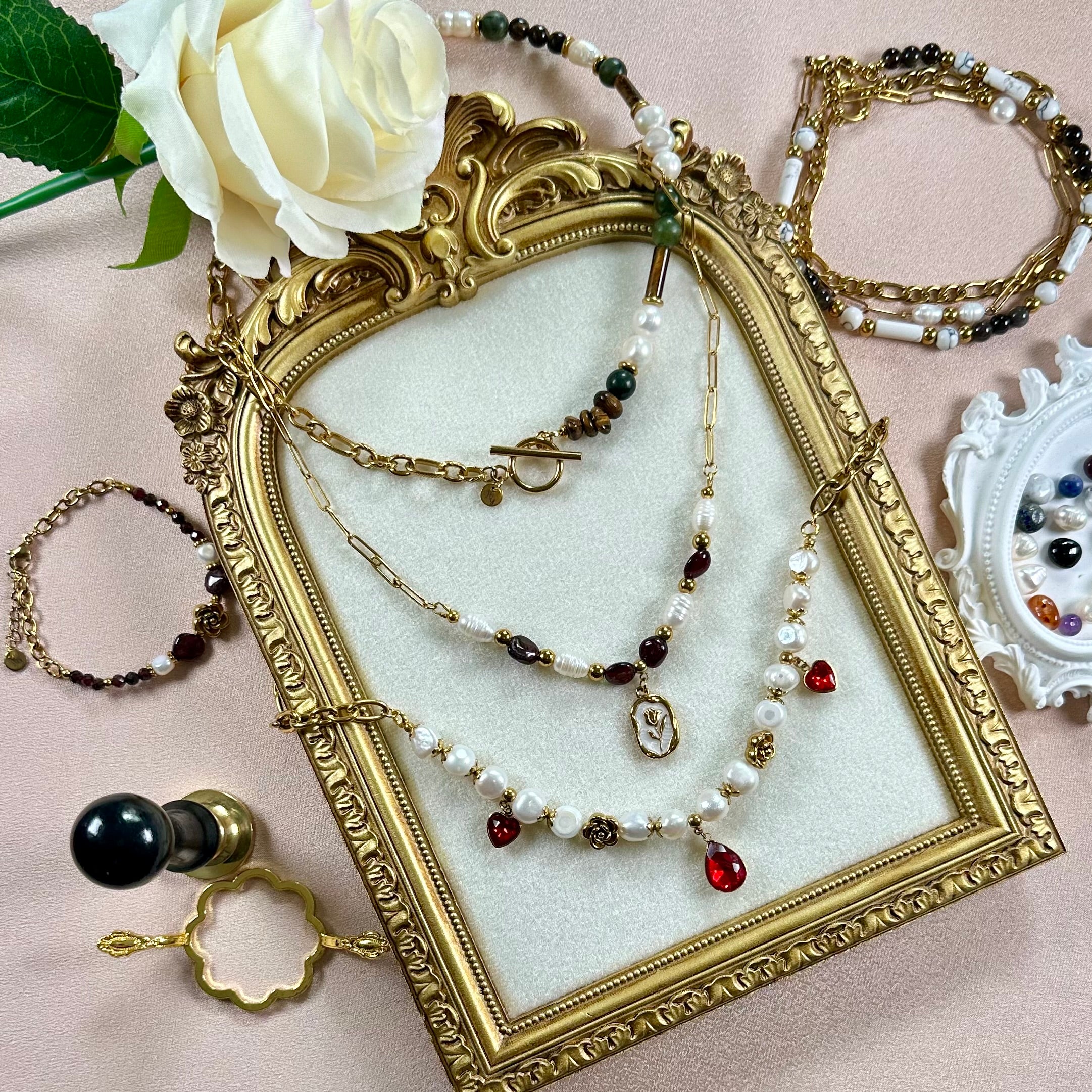 DécouvrirLes bijoux Heaven of Glam capturent la lumière avec l'éclat de l'acier inoxydable et la diversité des charms en pierres semi-précieuses ou encore en perles d'eau douce - une alliance précieuse, pensée pour traverser le temps sans jamais perdre en beauté. ✨