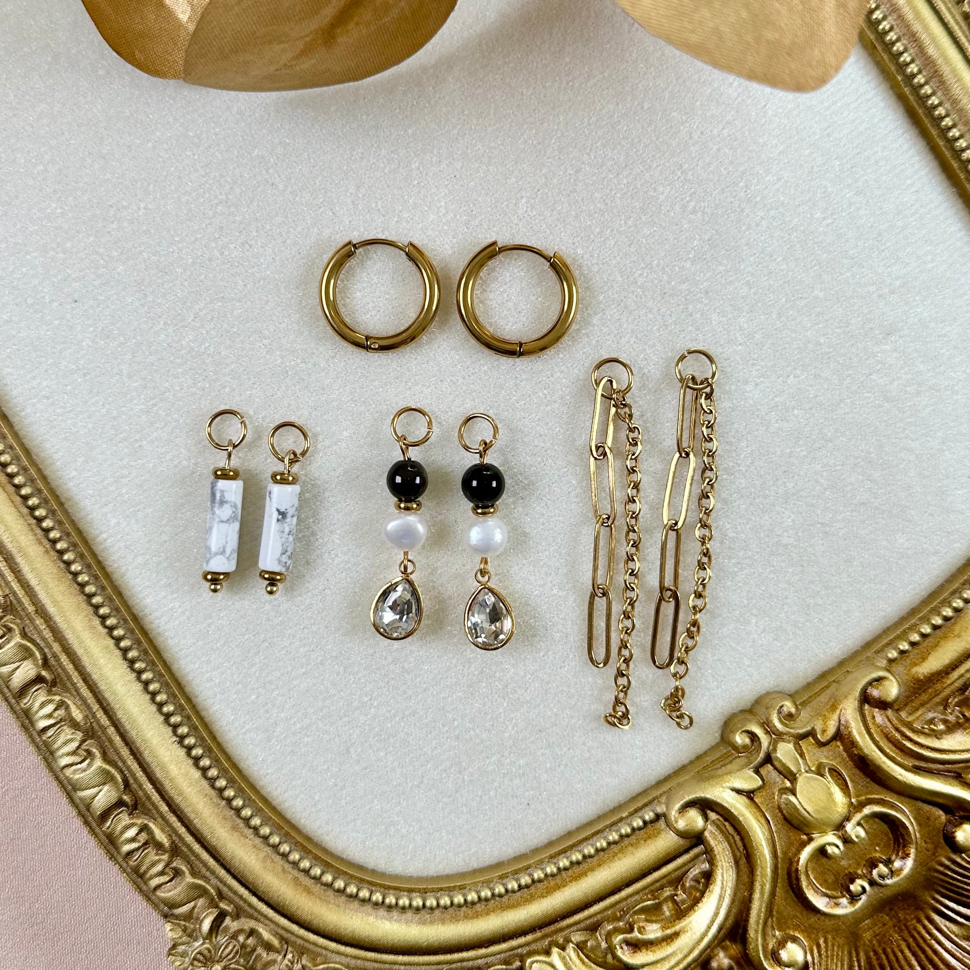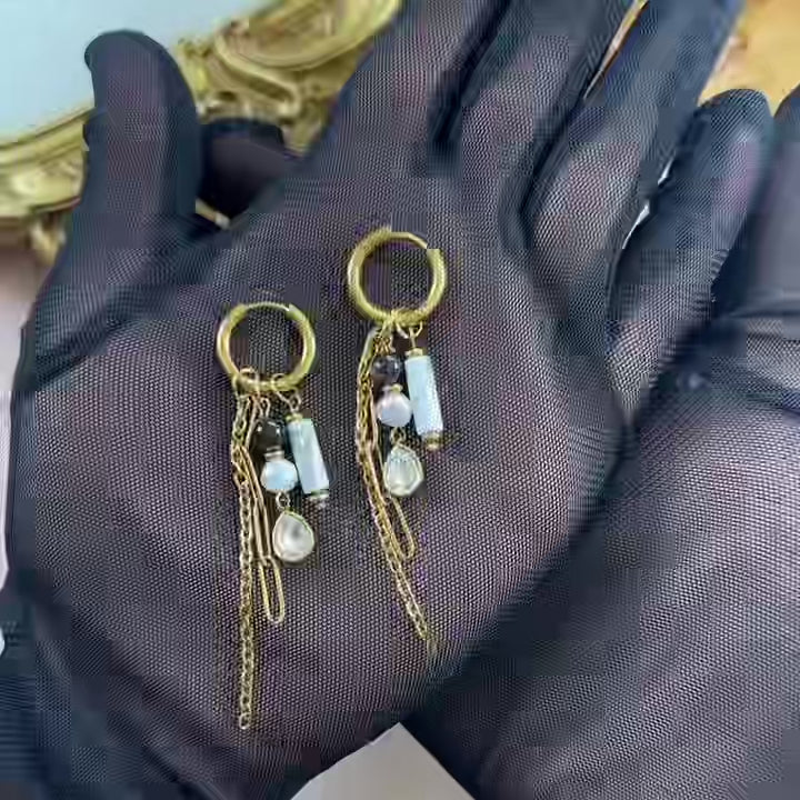 Ces boucles d'oreilles raffinées interchangeables (9 en 1) en acier inoxydable, pierres semi-précieuses obsidienne et howlite ainsi qu'en perles d'eau douce sont bien plus que de simples bijoux. Leur design reflète l'élégance et la rareté, parfait pour illuminer votre quotidien.