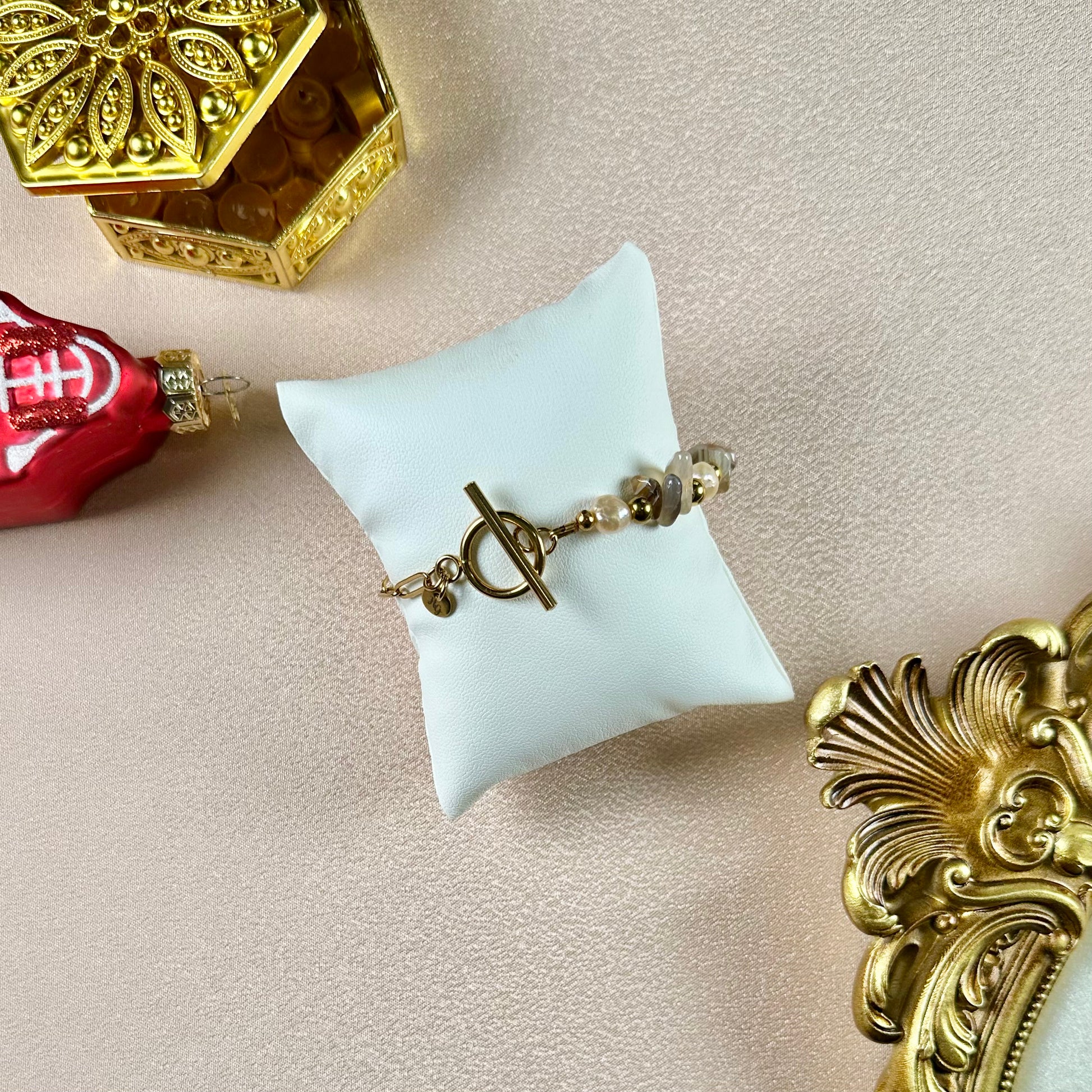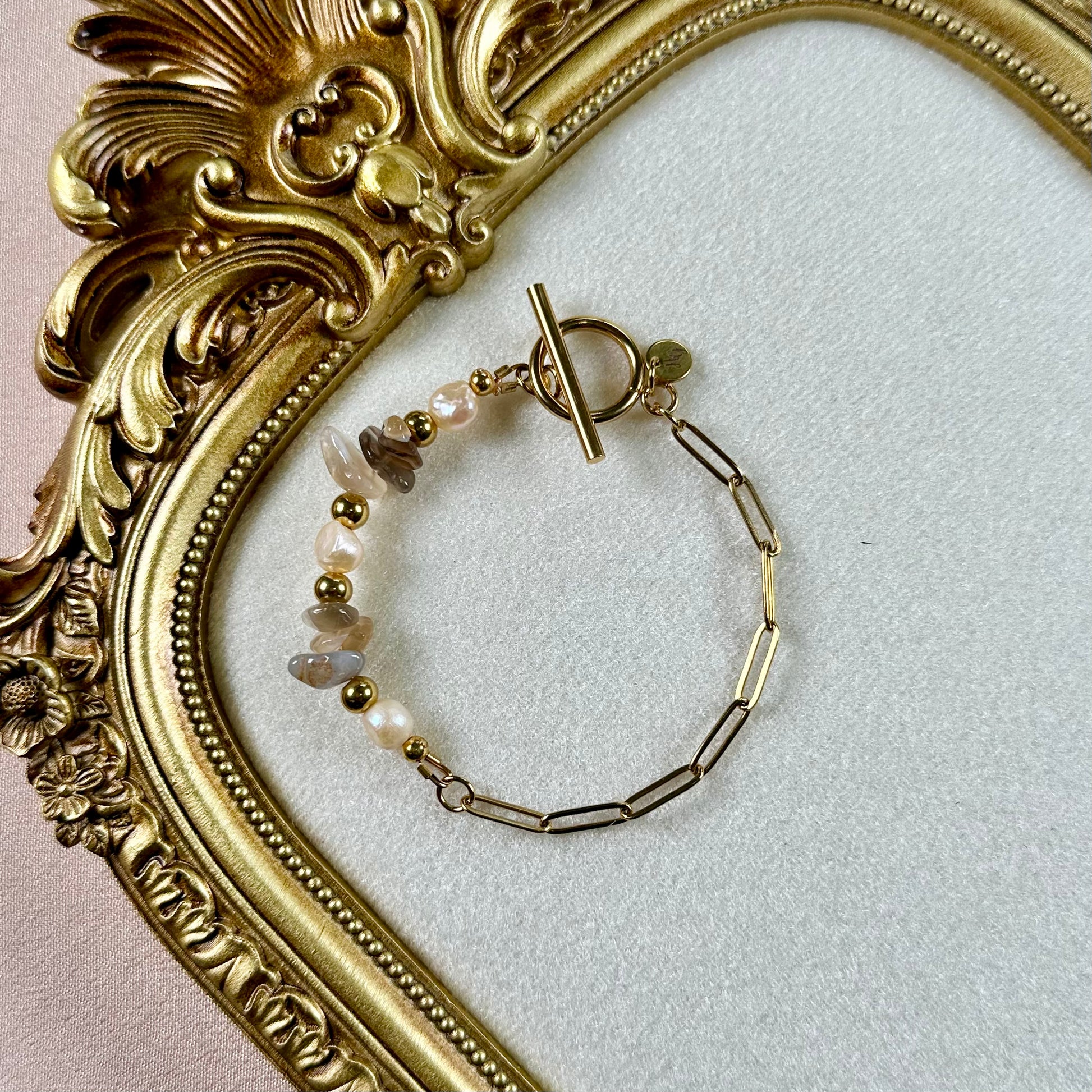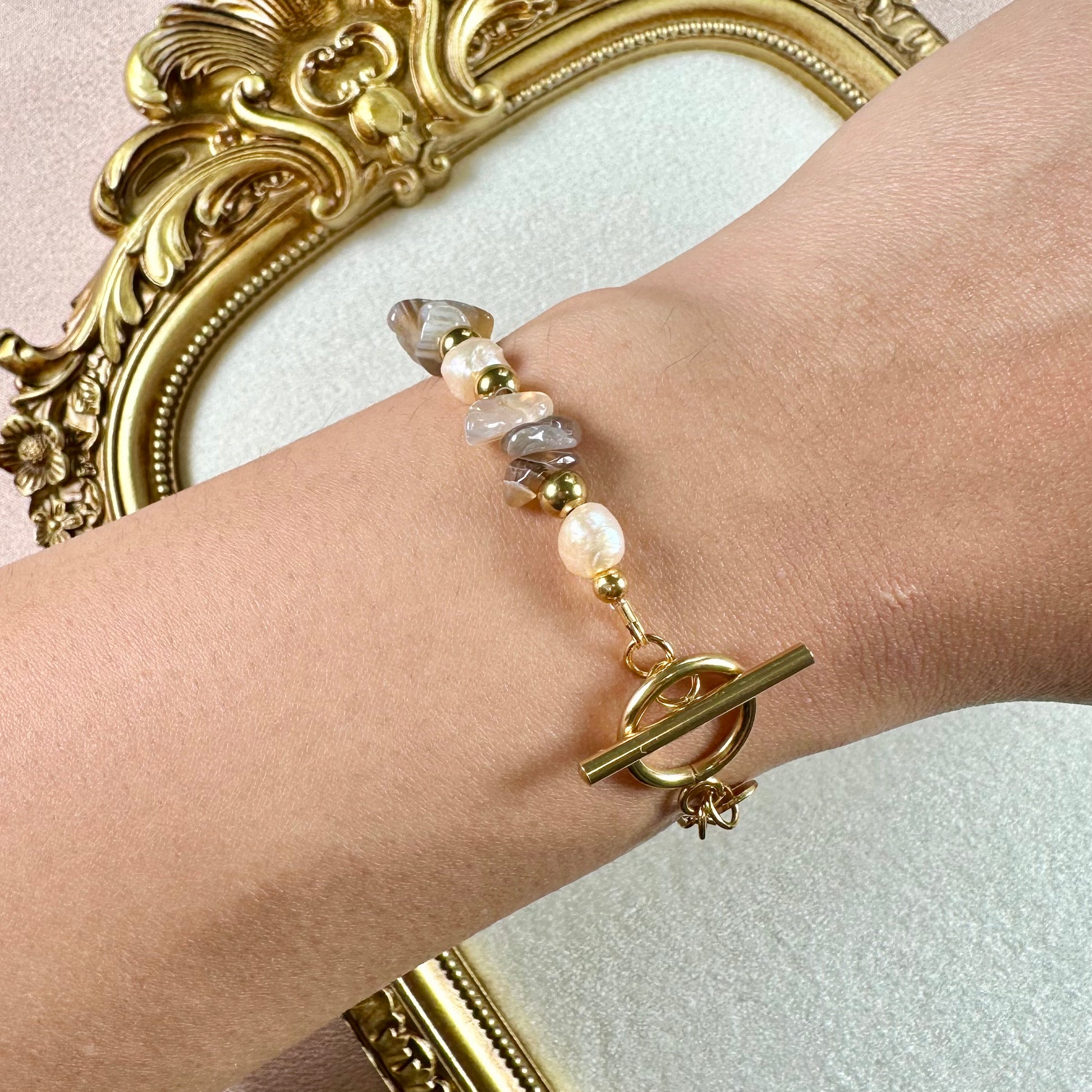 Ce bracelet raffiné en acier inoxydable, pierres semi-précieuses agate du Botswana et perles d'eau douce est bien plus qu'un simple bijou. Son design reflète l'élégance et la rareté, parfait pour illuminer votre quotidien.