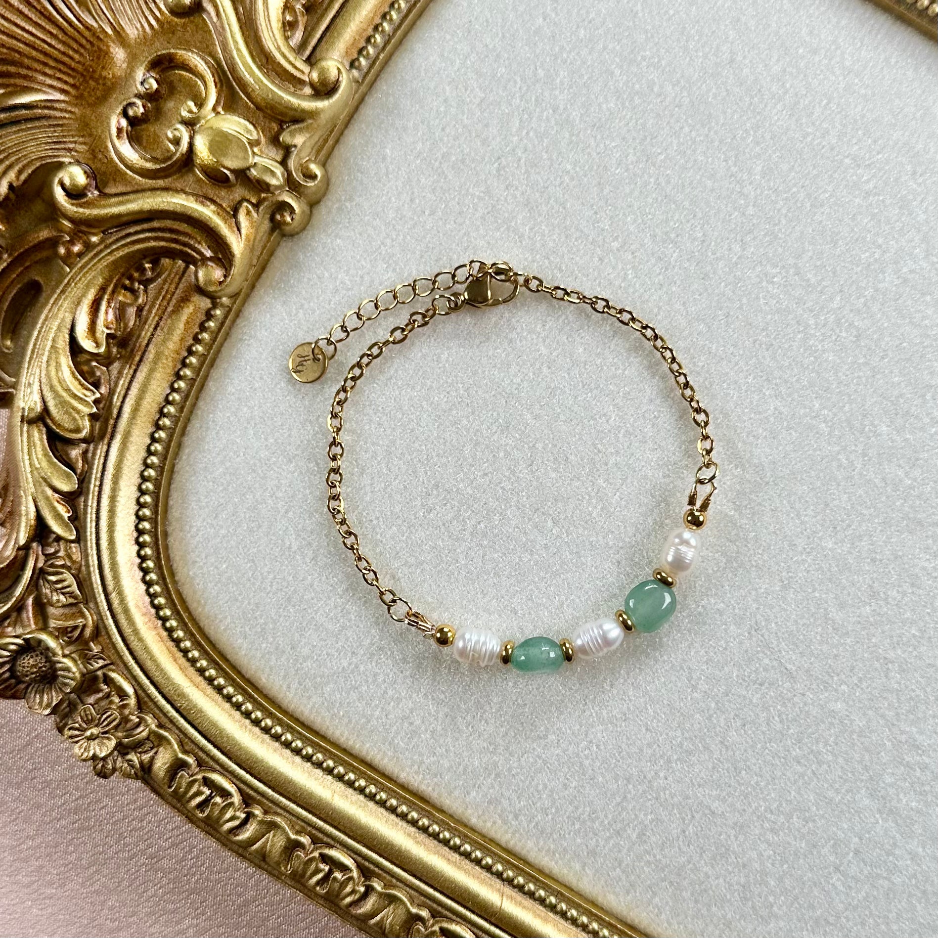 Ce collier raffiné en acier inoxydable, pierres semi-précieuses aventurine verte et perles d'eau douce est bien plus qu'un simple bijou. Son design reflète l'élégance et la rareté, parfait pour illuminer votre quotidien.