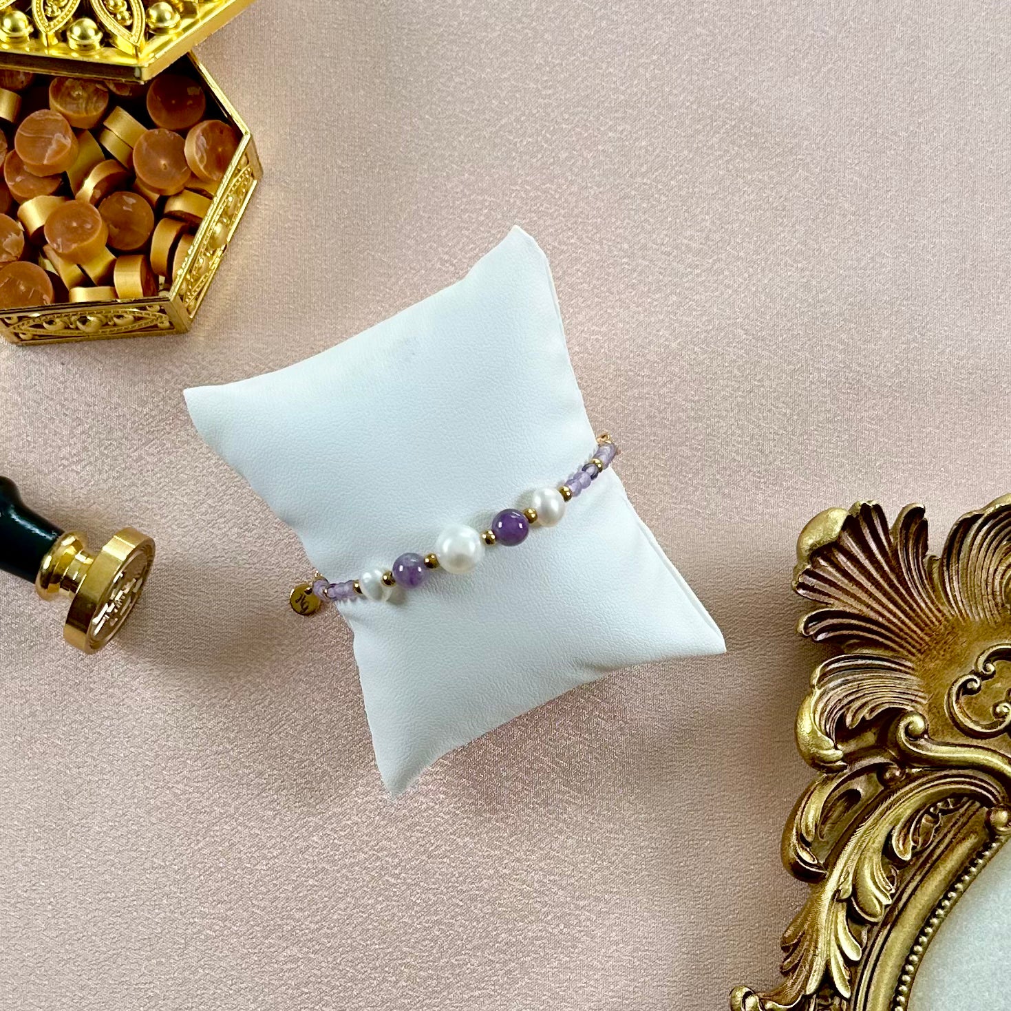 Ce bracelet raffiné en acier inoxydable, pierres semi-précieuses améthyste et perles d'eau douce est bien plus qu'un simple bijou. Son design reflète l'élégance et la rareté, parfait pour illuminer votre quotidien.