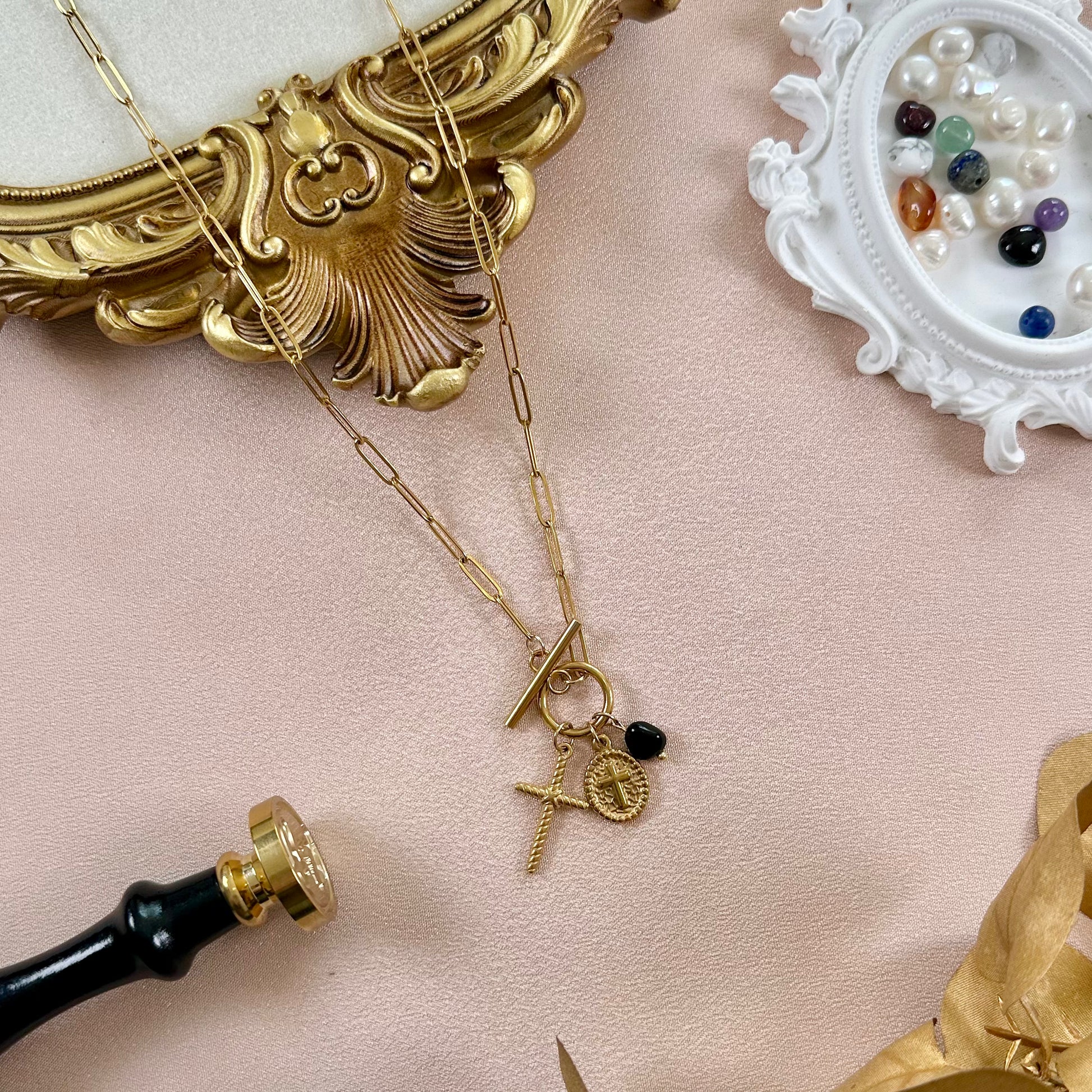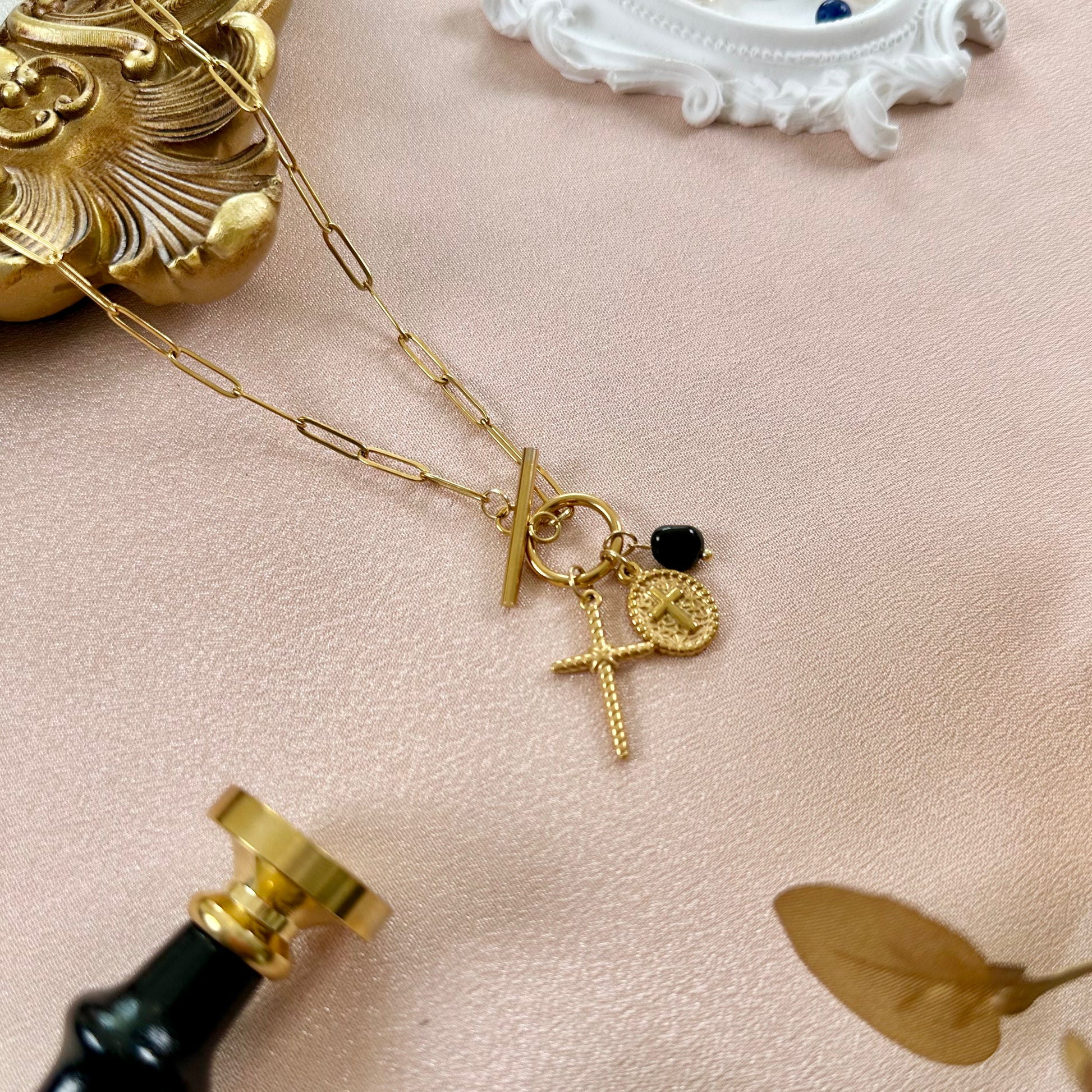 Ce collier raffiné en acier inoxydable et pierre semi-précieuse obsidienne est bien plus qu'un simple bijou. Son design à croix reflète la foi et l’amour, parfait pour illuminer votre quotidien.