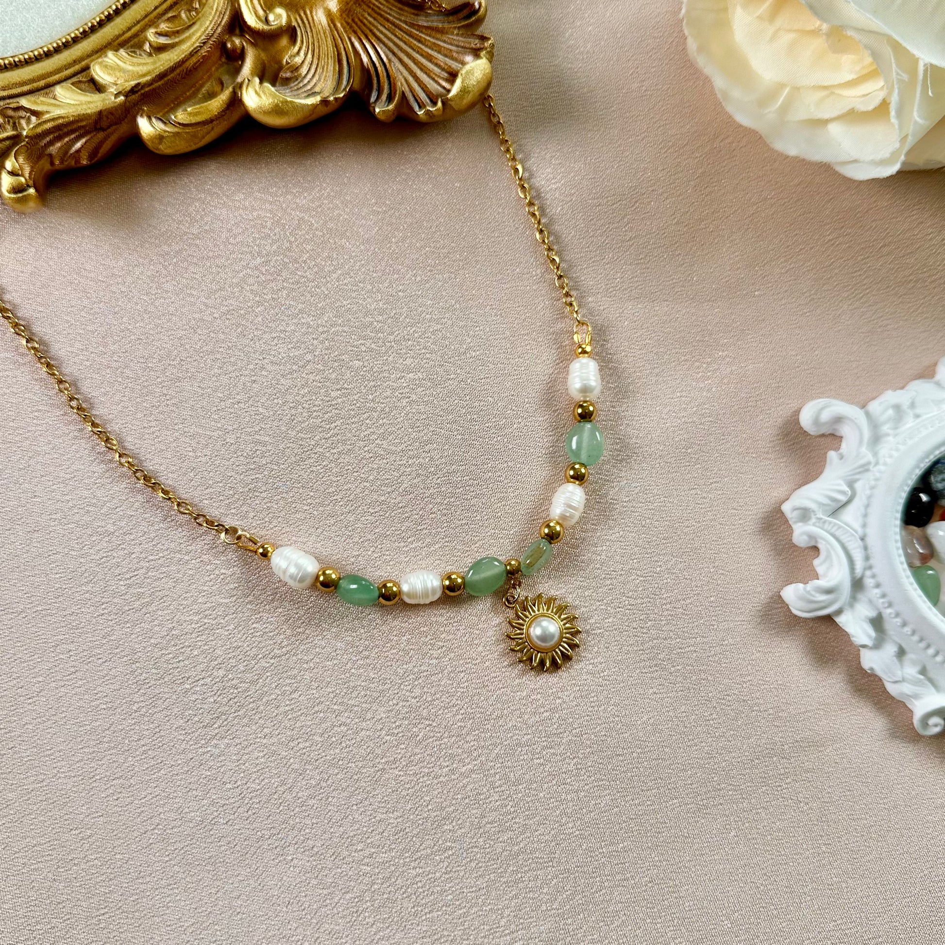 Ce collier raffiné en acier inoxydable, pierres semi-précieuses aventurine verte et perles d'eau douce est bien plus qu'un simple bijou. Son design reflète l'élégance et la rareté, parfait pour illuminer votre quotidien.