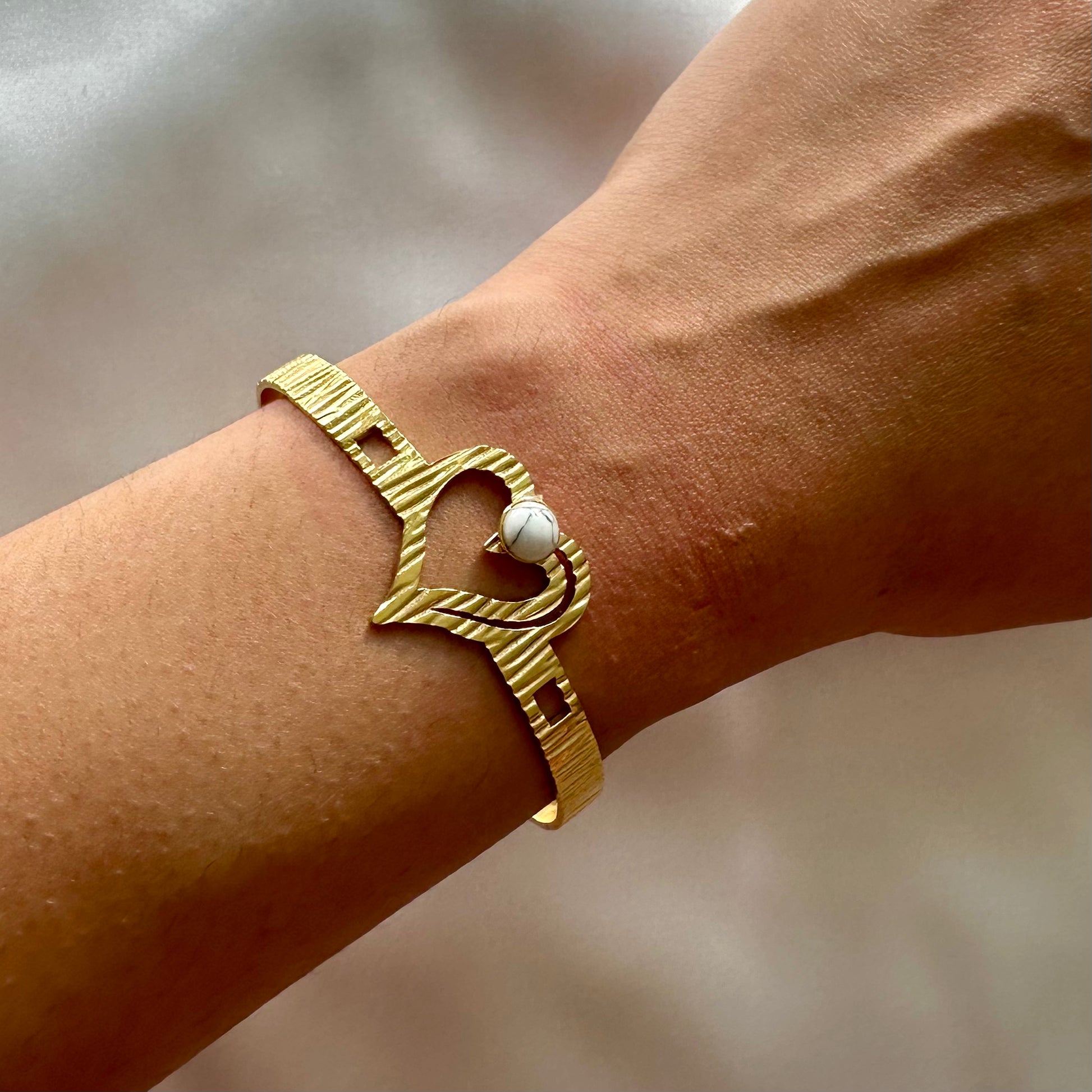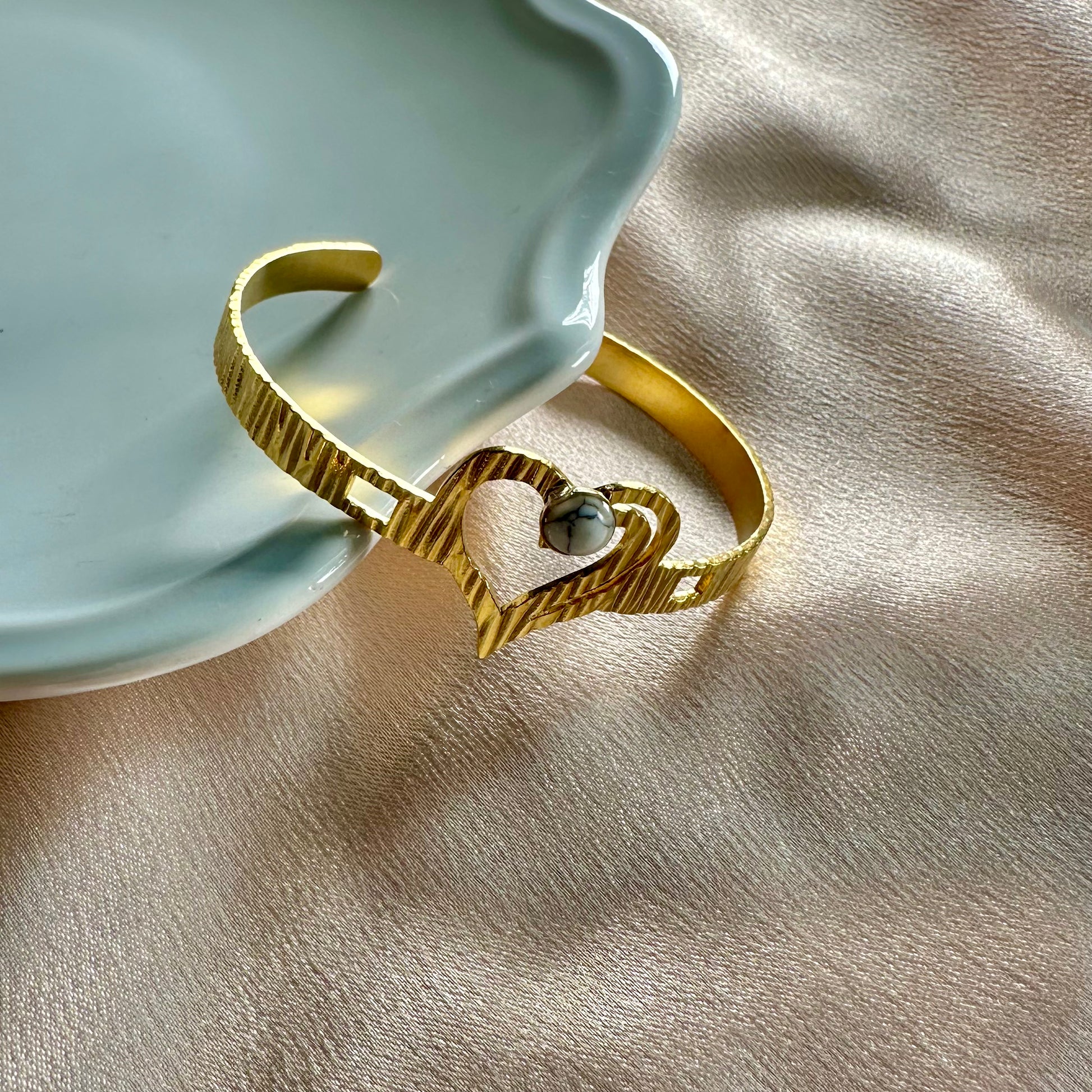 Cette manchette raffinée en acier inoxydable est bien plus qu'un simple bijou. Son design à coeur reflète l'amour et l’élégance, parfait pour illuminer votre quotidien.