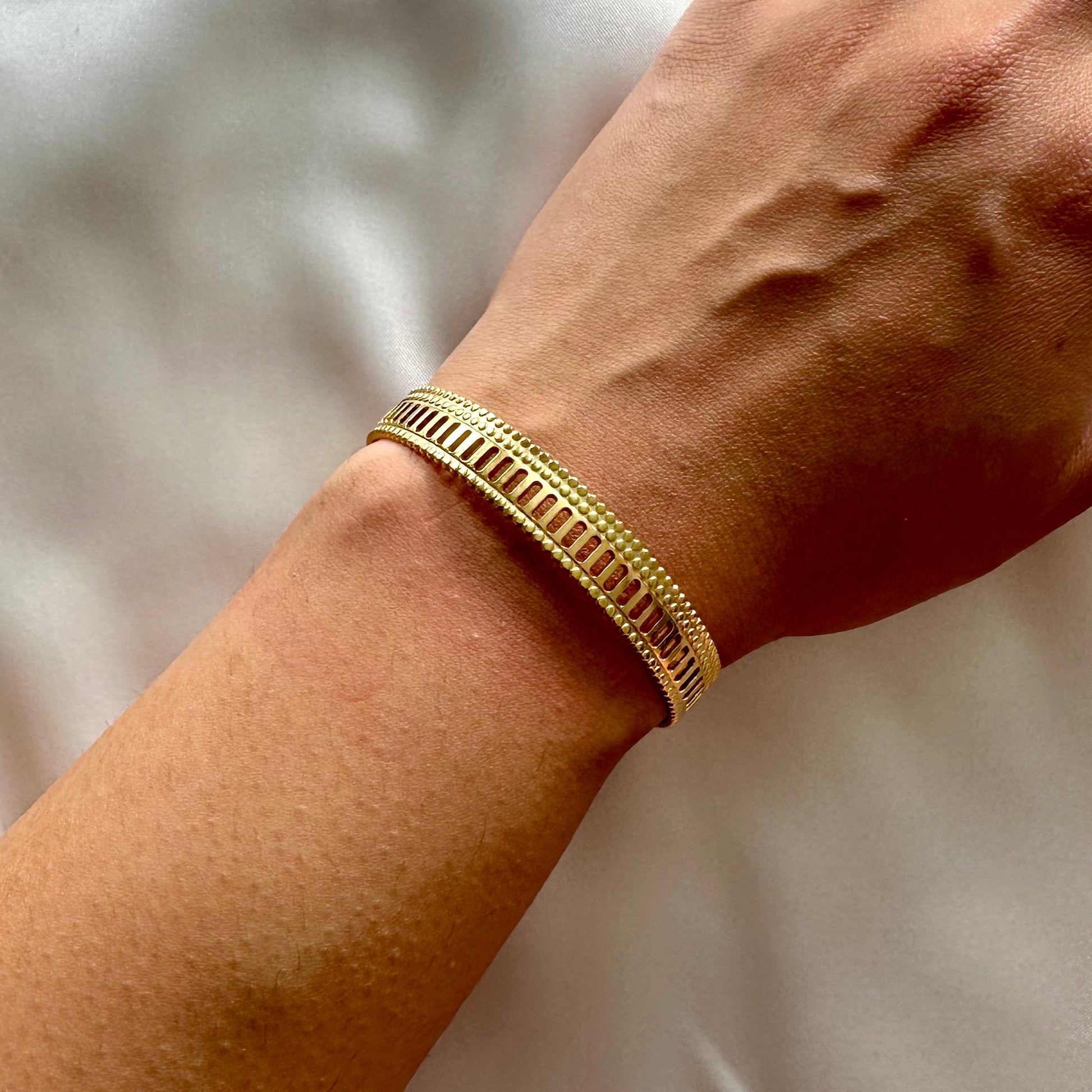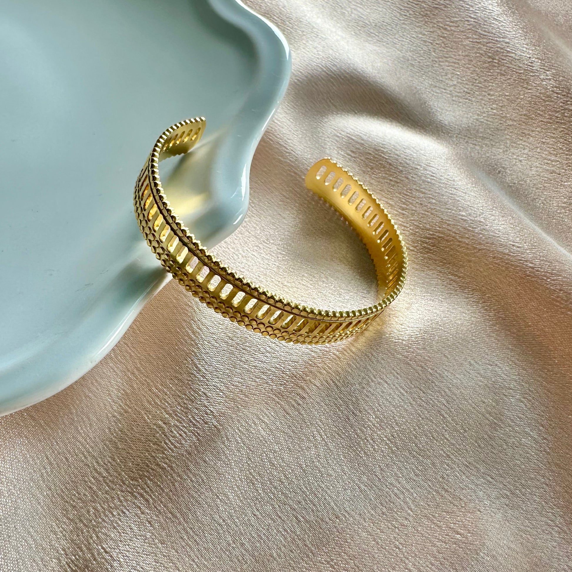 Cette manchette raffinée en acier inoxydable est bien plus qu'un simple bijou. Son design reflète la gloire et l’élégance, parfait pour illuminer votre quotidien.